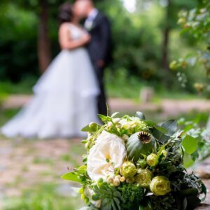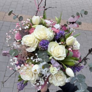 Букет с гипсофила и мече в луксозна чантичка “Kisses”💋