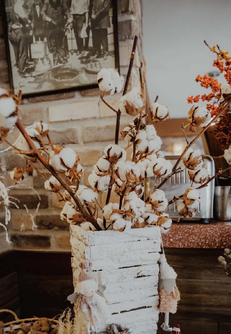 Използван в интериорни аранжировки, декоративни композиции и сезонен декор, памукът се вписва естествено както в модерен, така и в рустик или скандинавски стил. Той е дълготраен, лесен за поддръжка и запазва своята форма и естетика с времето.